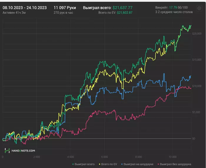 geeeel2 @ 22.10.23vit90, бешеный ап на 250к рук? всё-таки на подобных дистанциях большие отклонения уже маловероятны. у хайроллеров за 20к рук может что угодно произойти, так что я бы их не сравнивал