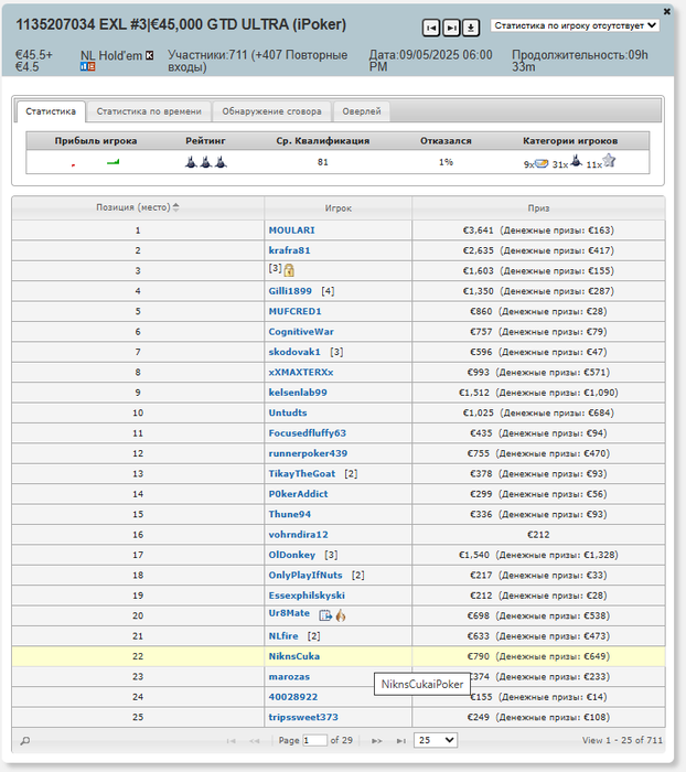Сегодня 10+ часов стрим, +1.7К профит. 1-е место в 25-ке на айпокере, 2-е в 22-ке на 888, 3-е в зарплатном по 55 и в ТОП20 мистери по 50 на айпокере отлетел, но там хоть ноков немного лутанул. ЕВ тоже нажил)