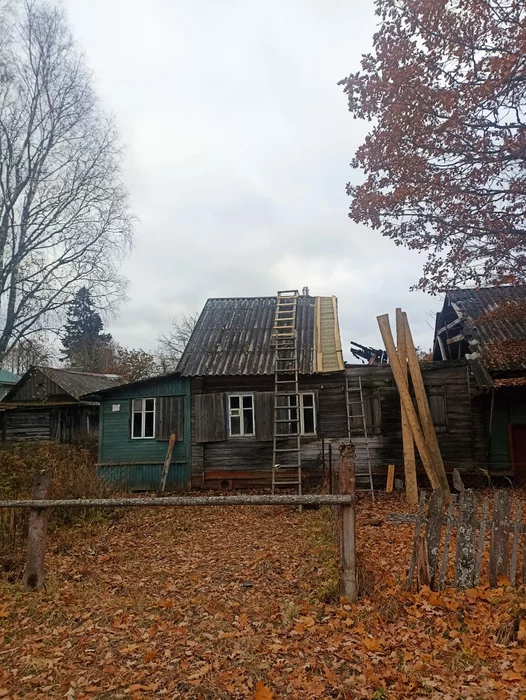 Вован халтурит-помогает Сергею отсечь свой дом! Там на 3 семьи был дом под одной крышей, две семьи ушли, и родные не ездят, бросили!