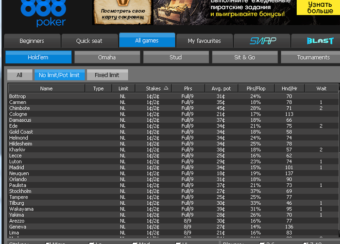 Ежемесячные бонусы, мягкие составы после ухода рума из РФ, подробная информация об оппонентах, 888Caption для комфортной игры и отличный сервис.
