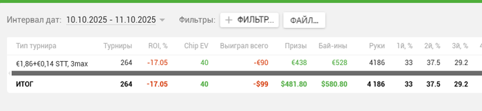 Но спины прям ваще сложно с мтт играть. даже два стола . не то пальто. сыграл 264 вместо 200 запланированных. по графику видно будет какой капец сегодня творился в раздачах. Но мы не унываем и идем вперед! Где наша не пропадала.