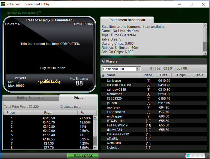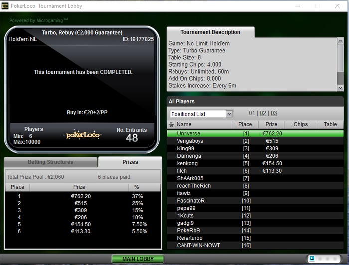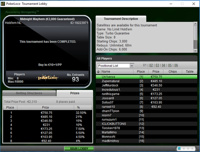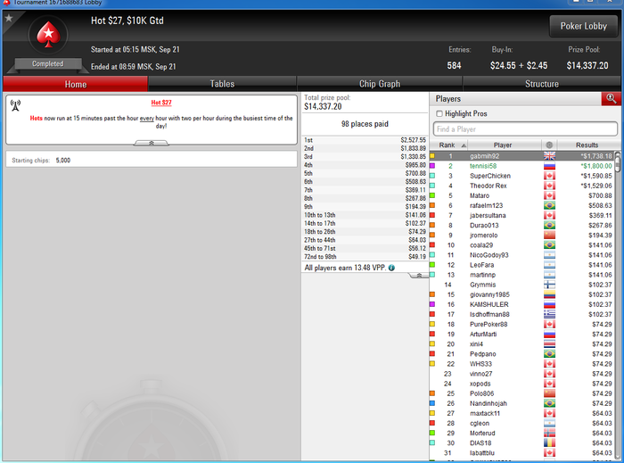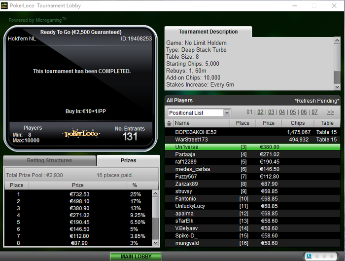Наконец-то и мне есть повод здесь отметиться, в топ 3 предлагал делить опы отказались,в ХА тоже получил отказ, благо всё сложилось и один из самых минусовых моих турниров биг за 22 мне покорился, за всю боль