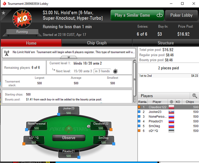 h8autumn, Сорян, у меня чат выключен , а то там такое иногда можно начитаться)) Бабл да, минут 15 точно)) туда сюда фишки гоняли. Уже тенденция бума что то не очень просматривается . Или же фиши пошли пробовать что то другое, спины и т.д.