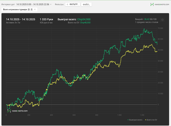 Дальше сел катать Ха, так как на венике ха встретили нас не оч радужно, и мы залили свои сокровища. Но у нас ведь есть 27 баксов на чико верно? верно. А там есть ХА. А Ха я играю лучше чем 3 макс. диспы там меньше. И залетел просто почекать поляну. Посмотрел рейк. Отыграл 86 хедзапов. По ощущениям имею переввес с запасом, но только вот рейкбек там говорят хромает. Написал в саппорт джипси, завтра расскажут всю инфу. Также по ощущениям ройку 5% иметь можно в туриках по 3-50 с моим скиллом. Но надо прокатывать-смотреть-считать стоит ли оно того. считай 25 турниров в час примерно получилось. чтобы отыграть 200 турниров надо 8 часов. по деньгам это 35 евро. И это очень мало, вот 350 бы-нормально было бы.