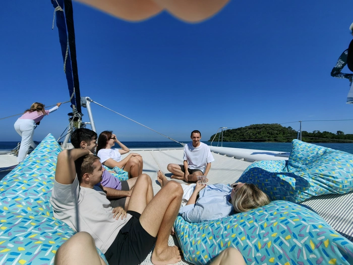 Прибегает Рома с бешенными глазами, давай 1 к 5. Нужно сказать, что половину времени они же уже потратили, потому что мы скоро уплываем, осталось 20 минут.
