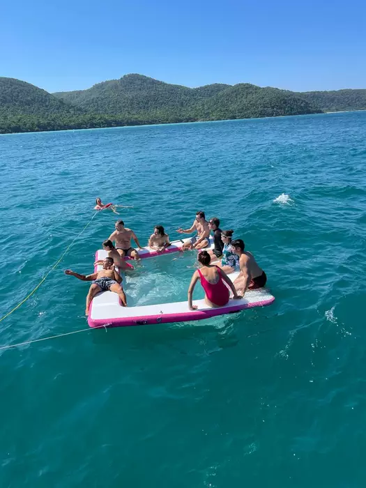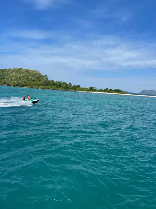 Был разгар дня 14:00, вокруг нас другие лодки в тридцати метрах, гидроциклы, ватрушки, плавают люди, играет музыка, солнечный день в самом разгаре. Рыба не должна клевать учитывая всю совокупность факторов.