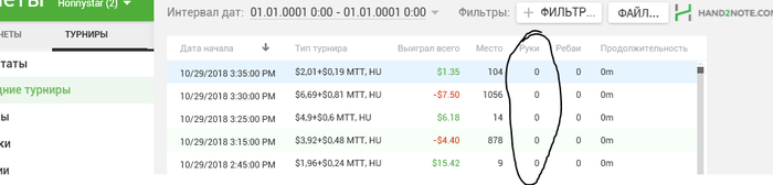 iMto @ 30.10.2018 Здравствуйте. Вопросы: 1. где отредактировать положение макнутых карт? 2. при игре на рег 6 макс одна раздача выигранная в отчеты - результаты обозначена как nl 2 HU. Почему? 3. как отключить цифры количества непросмотренных раздач на цветовых метках?