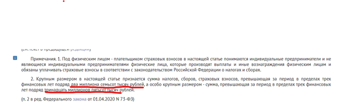 А вообще в ст УК определены понятия крупных и очень крупных неуплат. Последние суммы были 2.7 и 13 за 3 года, сейчас не знаю, лень смотреть, сами в Консультант посмотрите