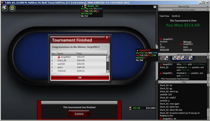 Ongame Network $2,000 NL Holdem No Limit Hold'em Tournament - t1250/t2500 Blinds + t250 - 7 players - View hand 1167965