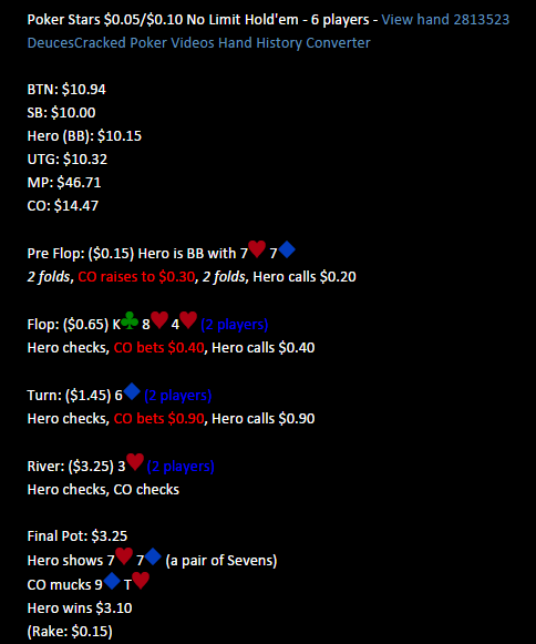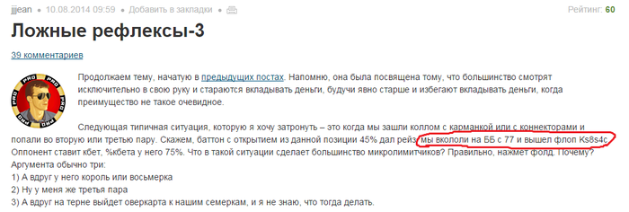 Да, 3бет на префлопе - стандартная игра, но МП открылся чуть большим сайзингом и я заподозрил неладное