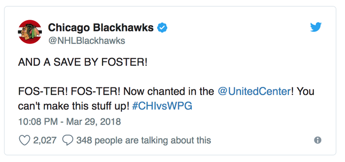 Было пару случаев таких подмен любителями в НХЛ, но тогда, если мне не изменяет память, они играли не больше оставшейся минуты. Тут, Скотту надо было отстоять 14 минут на воротах при счете 6:2 в пользу Чикаго и таки постараться пропустить как можно меньше!!!