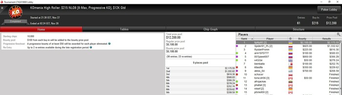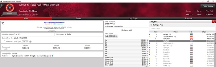 Доковылял до 2го дня 215, от бабла до конца дня полз балансируя на 8-25бб. Второй день начнется с 22бб.
