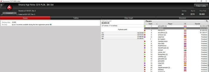 сложный был ХА. вышли 40бб против 170бб а поляк при этом вязко вязко играл понаачали,. минимум префлопа, но весь что был- я был сверху. а я выбрал тактику тотал лимпа, и совершено пасивным линиям постфлоп, к чему он видимо небыл готов и начал периодически подблефовывать. Первое удвоение так и вышло, полукулер где у меня натсы с флопа, а у него 17 натс, но он решил поагресивничать. Чуть ровнее стало, легче играть глубокий постфлоп и тут я уже половил его блефы котоыре перидически проскакивали, но и начал сам периодически продавливать, по итогу стеки стали 120 на 60 уже в мою пользу и мои АА устояли.