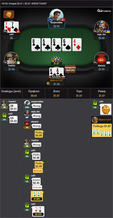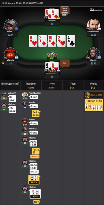 Есть в руках 2 карты, доска и оппонент(ты). Вот что мы играем постоянно в каждой раздаче. Например чел лимп-рейзит 46s, я его положил на АА, КК, QQ, JJ, потом уже играл ориентируясь на его статистику. Поэтому наверное получился такой странный розыгрыш с моей стороны. Знай я оппонента лучше, можно было сыграть и по другому.