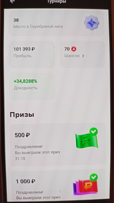 38 место в Альфа-турнире 2025, 2 период. Прибыль портфеля за время турнира +101 393 (стартовал с ~200 000), доходность +34.83%. Забавно, что к турниру присоединился через месяц после начала, т.к. не сразу про него узнал, т.е. вместо неполных 4 месяцев с 1 сентября, торговал меньше 3, начиная где-то с начала октября.