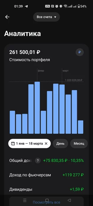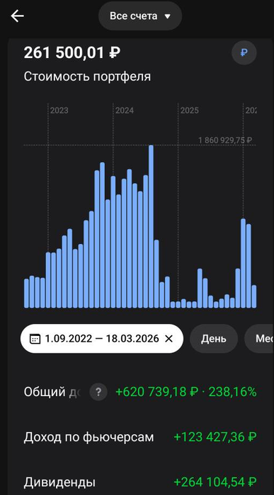Ну и раз это пост похвалы себя, зафиксирую результаты по всем счетам в Т банке, начиная с 01.09.2022 по 17.03.2026: