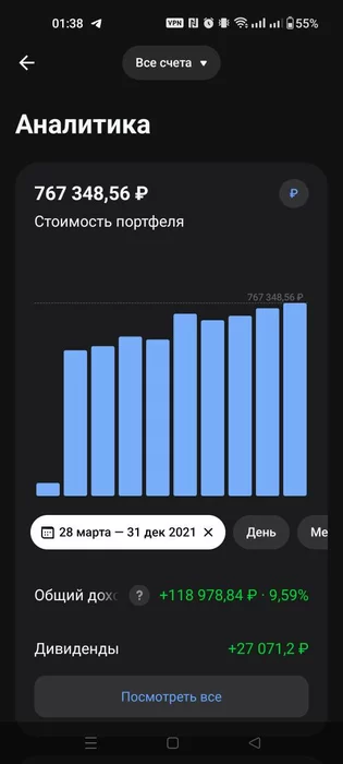 Честно, для меня такие результаты - шок, потому что этот счёт мною задумывался как самый консервативный и изначально считал, что он покажет самую низкую доходность.
