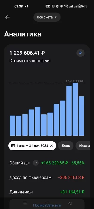 Здесь "лишние" где-то 100к с чем-то тысяч, о которых писал в прошлом году, что пополнение у меня по какой-то причине засчиталось в прибыль (% доходности Тинек, конечно, взял с потолка - таких и близко нет), в остальном цифры плюс/минус сходятся с моими (плюс/минус, потому что свою статистику веду с 01.01.2023).