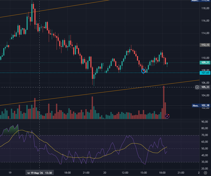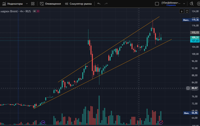 upd. Ещё дополню, что цена находилась у нижней границы канала, которую я нарисовал)). да-да, уже слышу стёб про отскок цены от чёрточек, вручную нарисованных на графике, типа откуда цене знать, что там чёрточка, от которой нужно отскочить). На самом деле для меня это отражение настроя толпы, отражение направления тренда движения цены. Пока мы в восходящем канале я бы не стал искать сделки в шорт или если бы и видел прям удачные паттерны, то входил бы меньшим объемом, чем обычно.