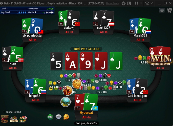 В первую тысячу турниров мне какой-то нечеловеческий апстрик включили под 100 фишек с турнира. Раза три на ривере с сильным закрывшимся бекдорным флешом допушивал и получал два колла от двух более слабых флешей. Вспоминал последние 150 000 спинов на старзах, не вспомнил ни одного такого куллера в свою сторону.