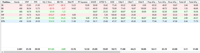 Затестил поляну на Пати, в основном катают только реги, очень много нитов. Т.к. фишей очень мало, приходится адово эксплойтить, вследствие чего статы становятся "дикими", 3бет уже почти 13%, сквиз почти 12,5 % Руки можно скачивать только за предыдущий день, их можно экспортировать в PT4 для анализа своей игры (все оппы при этом анонимы). График за 3 тестовых дня катки: Еще покатаю, думаю, минимум надо 100к рук набить, посмотрю как получится по деньгам с РБ.