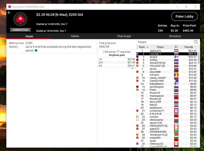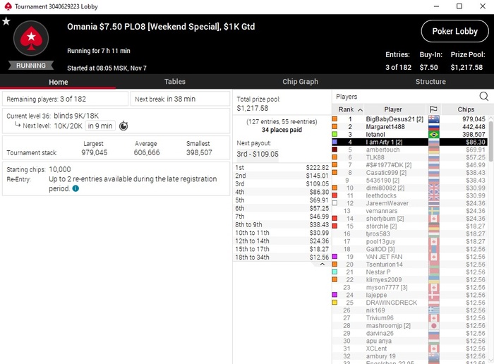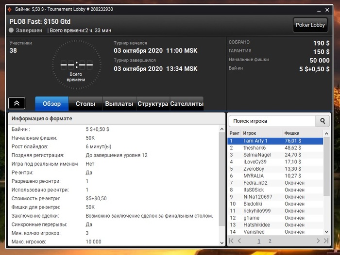 Всем привет, по ощущениям сто лет не был на GT, не было на это особо времени, катка идёт в рабочем режиме, особо по мне не ездят, играю плюс минус на ожидание, финалок было много, особенно по омахе, выиграл небольшой турнир на маленьком руме, в омаху8 только 2 скрина делал, когда 2 дня подряд выиграл маленькие гипера на Пати: