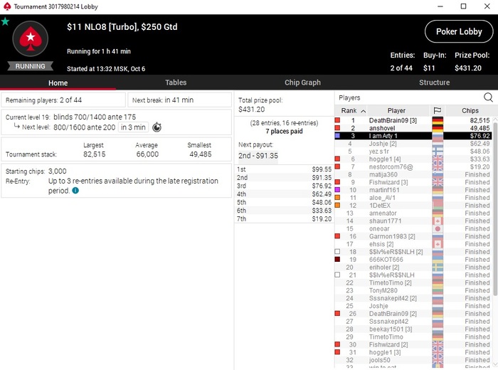 Поучаствовал в Чемпионате России на Покердоме, в хайле там мне быстро указали на дверь, выбив удивительным образом: