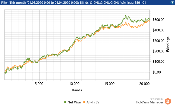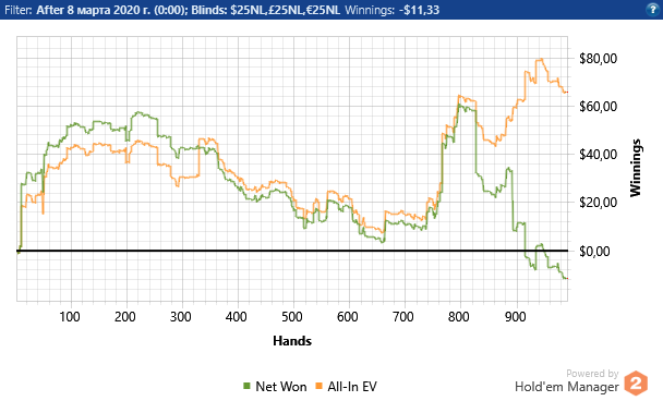 Закрылся с бэкером, спустился ниже играть на свои. В итоге отыграл НЛ10 в "ссаные" 24бб/100. Я даже не могу сказать что это был апчик, т.к якобы реги донатили не хуже фишей.