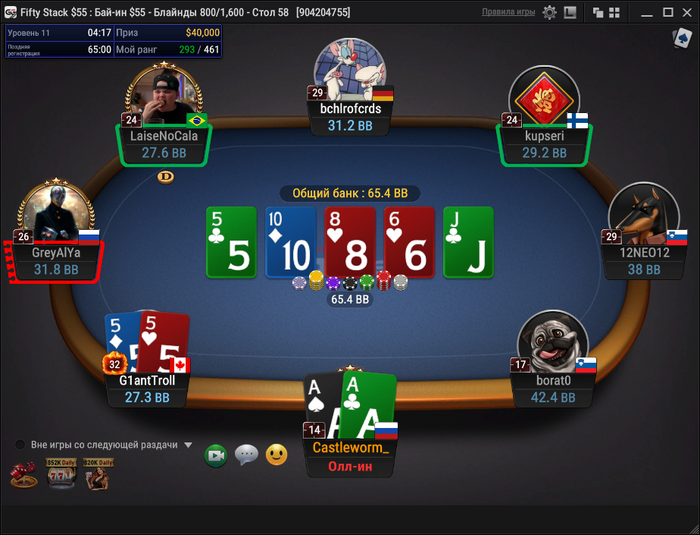 К сожалению, в топ-6 в стэках 24бб раздали в . Без чуда. Но игрой своей на финалке очень доволен.