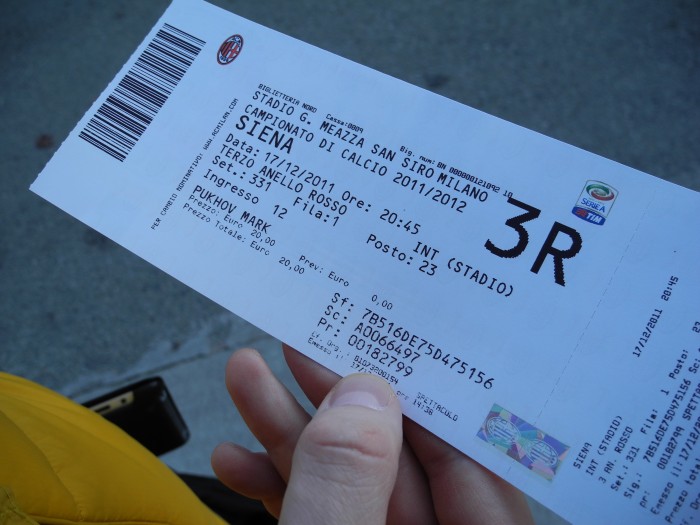 На следующий день мы пошли на футбол. Матч, конечно, не суперский, Милан с Сиеной, поэтому о билетах я совсем не парился, но для страховки мы пошли за ними днем.