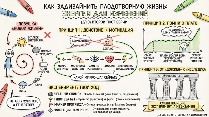 Поэтому вопрос не «как вдохновиться», а «какой микро-шаг я могу сделать сейчас, чтобы запустить этот цикл».