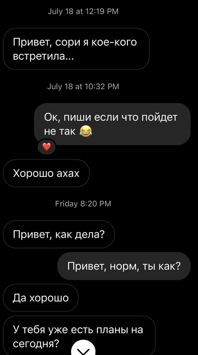 В пятницу сидел чилил с друзьями, кальян, фифа и тут бац сообщение в инсте в 8 вечера. Забегая чуть вперед хочу рассказать такую мутку. Никогда не включайте эго и не агритесь на бабу если вас слили по какой то причине и не удаляйте контакты. Макс ЕВ мув это всегда быть на позитиве. Я вот на днях так переапался)))