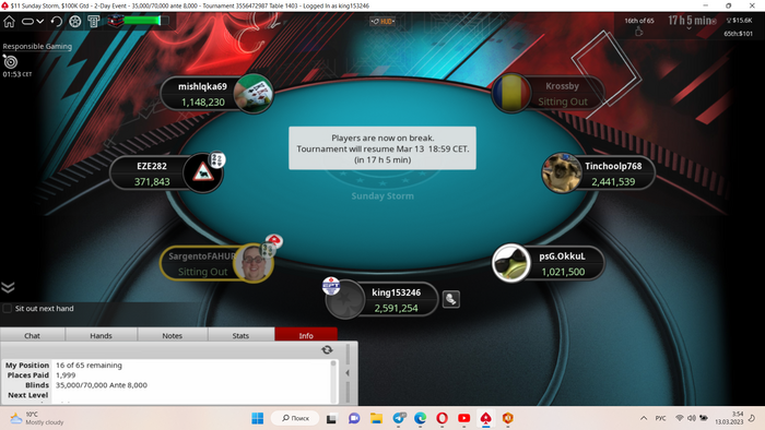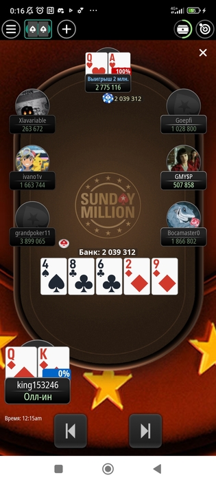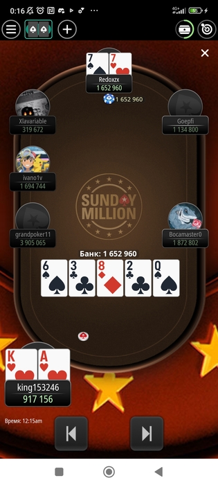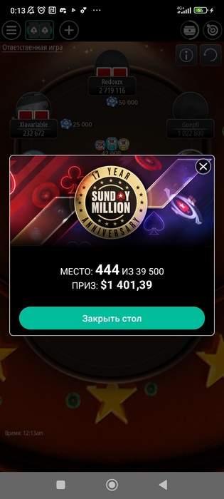 Играем мейн! Удачно проснулся и успел регнуть последнюю фазу на последней минуте лейт реги. Весело, конечно, по 5 баксов катают всякие лимп-фолды с 3 бб, подотвык от такой дичи)