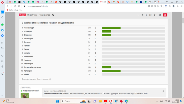 Резалты опроса по какой-то причине сбросились. Показывает 66 голосов, а отображает всего несколько. Лидером была Исландия, а правильный ответ "Эстония" выбрал только 1 человек.