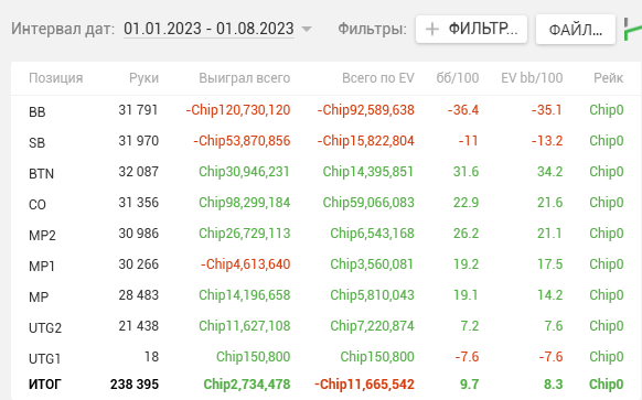 А без фильтров евбб/100 может быть 20, но в стеках 100бб + ты можешь показать 30евбб, а в стеках меньше 50бб -10евбб, и толку тогда от таких винрейтов.