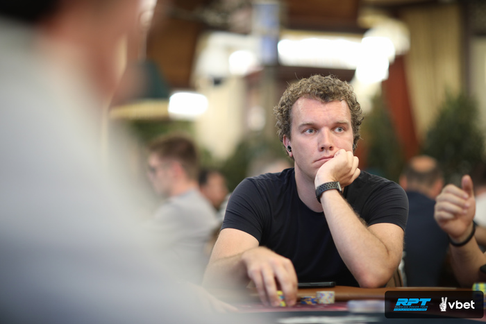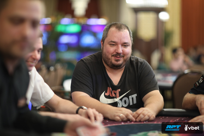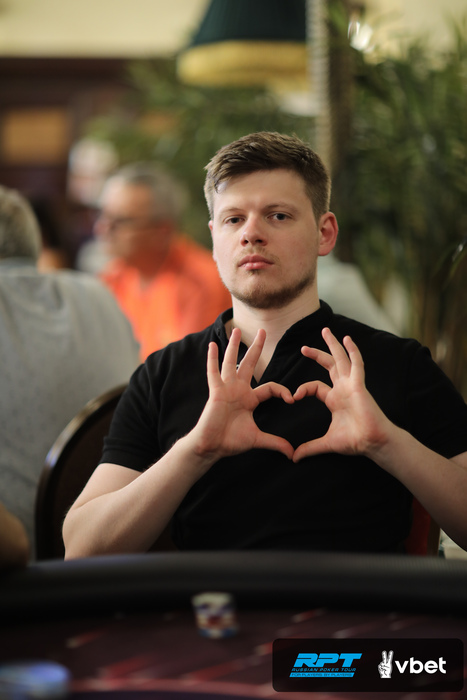 Успел наиграться в Хайроллерах Артем Тужик. Но, сделал ре-ентри и сел обратно в турнир.