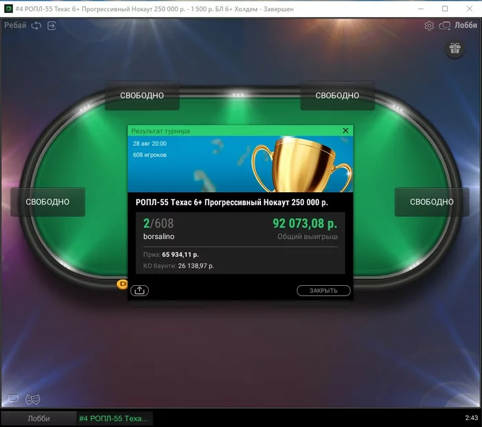 ИТОГ : +206500 за всю игру на ROPL ,а также 🏆 на полку и эмоций от процесса борьбы