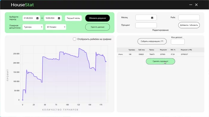 3) Ананас график за август ,но до ропла там ничего вроде и не было .Отыграл всего 26 турниров то есть входов сделал по минимуму , играл в кайф , Ложили отлично Поэтому тут в + . А также это единственная игра которая дала нам кубок 🏆