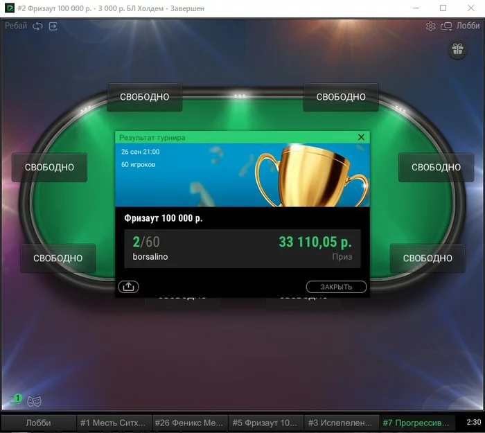 Сегодня пропускаем турнир по 100к.
