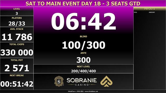 Закончилась поздняя регистрация сателлита на Amber Event Day 2. Было сделано 28 входов. В игре оставлось 14 участников. Вместо двух, разыграем три билета.