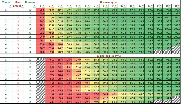 Пытался вывести формулы значений вероятностей для 3 аутов и более, может кто-нибудь тоже пытался?) Помогите пожалуйста