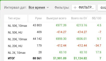 Не могу сказать что я доволен прям, но тем не менее все таки глупо отрицать что гожусь и в принципе хочу дальше двигаться в этом направлении, на полтосе последнее две недели просто ужасный ран, прям пиздец…поэтому таким маленьким винрейтом я в принципе удовлетворен, при том что вначале тоже из-за большой разницы в поляне между нл20 и нл50 чуть потерялся и первые где то 10-15к катал нули, свое ожидание все же оцениваю 5-6-7бб, пару раз уже садился на сотку, думаю если без происшествий откатаю ближайшие пару недель то уже буду прям полноценно подрубать сотен.