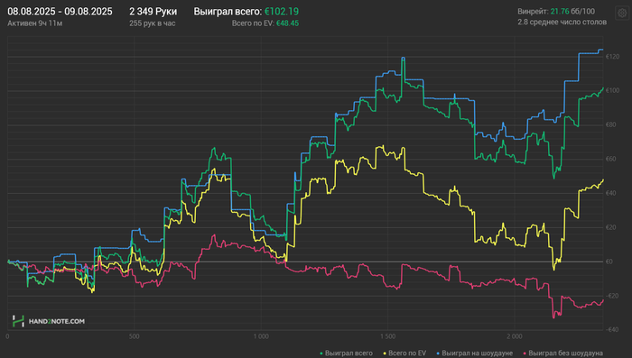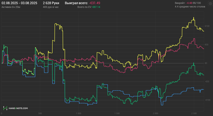 Почасовка приличная и кол-во рук с учетом того что я играю четыре стола тоже. Но от этого не легче.