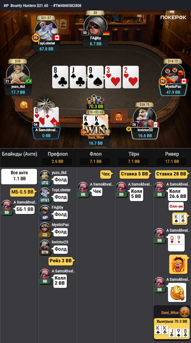Причем он или за игрой не следил, или обратно залевелился что я раз прошлую блеф показал в открытую, то сейчас проставлю «типа на велью», а по итогу блефы у меня типа будут.