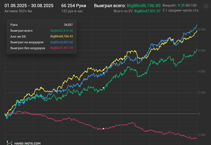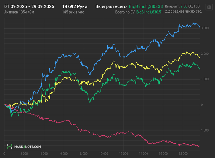 Из плюсов, покер мне вообще не надоел) По-прежнему нравится играть и учиться. Вот даже сегодня, когда решил сделать выходной, так как план выполнен, свербит, хочется покатать. Ну тут возможно еще внутренний лудоман заставляет. Т.к нахожусь в самом большом даунстрике за всё время. Нужно отыграться, не до отдыха. Ну и как способ отвлечься от реальности, погружение в работу - всегда в плюс.