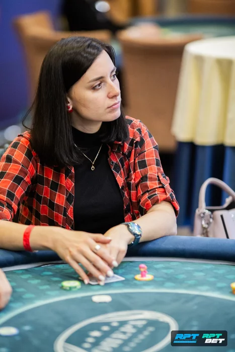 Яна Щербук сегодня развлекает стол. У них разговоры идут обо всем, кроме покера. С игрой у нее пока сегодня не ладится: раздают отличные стартеры, но раздачи выигрывать не выходит.