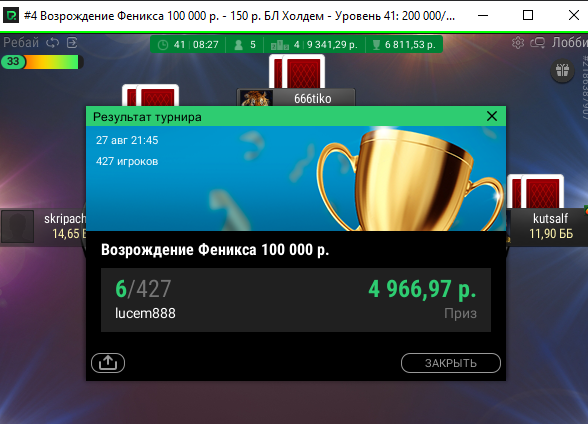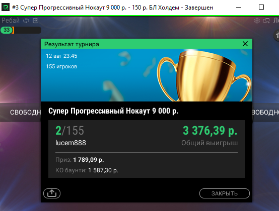 Про покер писать не хочется. Как-то не очень нравится и получается катать без целей и режима. Пара финалок было. На второй поделили