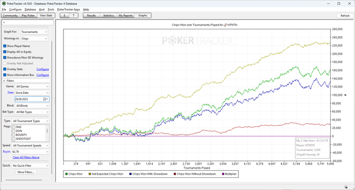 В трекере же другая информация, видно, что после первых ста турниров я отыграл в + по оранжевой.