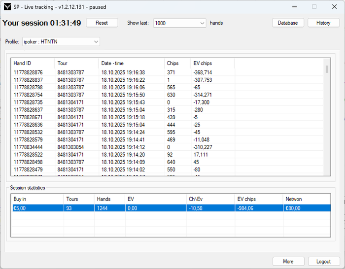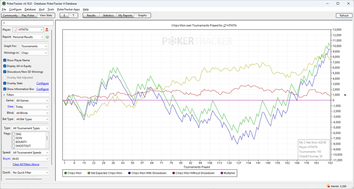 Кто играет в пуле стил феникс можете подсказать? Сыграл первые 100 турниров без проги sp - live tracking (Банально не понял, что ее надо запускать). После этого сыграл 93 турнира с ней и уже не понял один момент. Она пишет, что я отыграл в минусовое чипев: