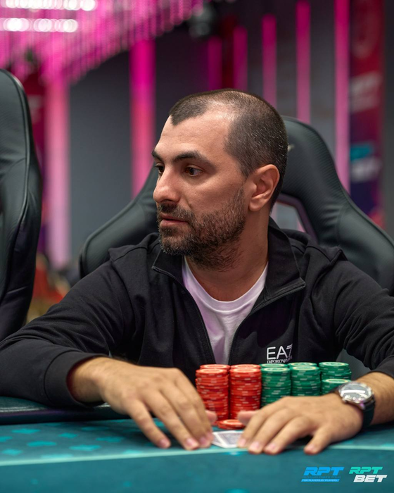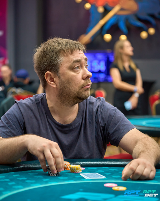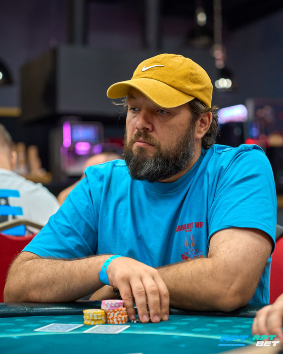 Роман Орлов (11,5М) попытался зайти комплитом, но на ВВ Тимур Бабаев (6М) поднял до 700К. Роман доставил, смотрим, что там на флопе: